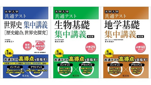 教育出版の株式会社旺文社(東京都新宿区/代表取締役社長 粂川秀樹)は、「共通テスト集中講義」シリーズ『共通テスト 世界史 集中講義[歴史総合,世界史探究]』、『共通テスト 生物基礎 集中講義 改訂版』、『共通テスト 地学基礎 集中講義 改訂版』を6月25日(火)に刊行いたします。