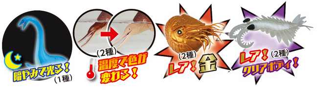 おなじみの”のび~る”ギミックはもちろん、暗やみで光ったり(1種)、