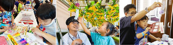 運行開始に先立ち、風鈴電車をお子様たちと一緒に作り上げるイベントを7月27日(土)に開催します。100名のお子様とその保護者様を招待し、平野駅に留置した電車の中でガラス風鈴と短冊に思い思いに絵付けをしていただき、当社社員と共に風鈴を電車に取り付ける工程までお楽しみいただきます。その後、できあがった風鈴電車に乗り洗車体験を行い、走る電車の中で揺れ動くオリジナル風鈴の彩りや音色をお楽しみいただきます。