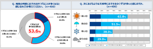TOPIC2 約半数の親が、梅雨の時期に子どもがぐずりやすくなると感じると回答。