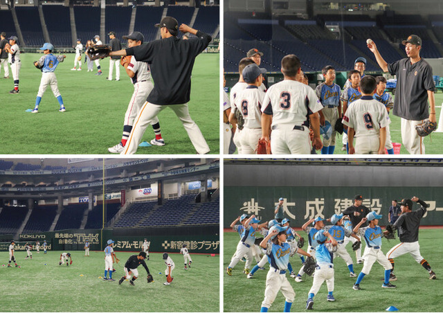 公式戦終了後の東京ドームにて、少年野球チームに所属する小学生約30人を対象に野球教室が行われました。