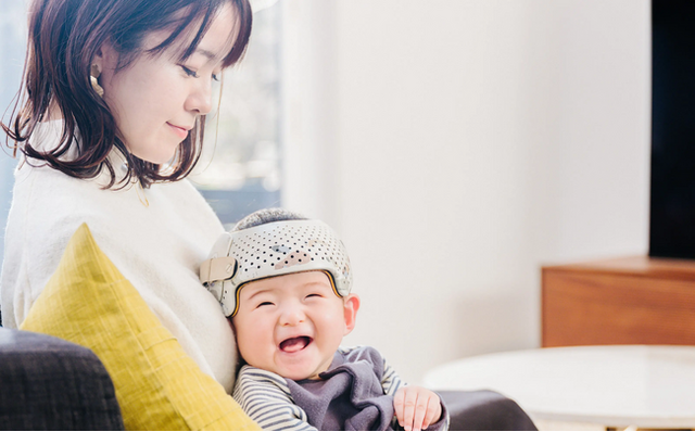 出生前後の様々な要因によって発症する頭の形状のゆがみを治療していくヘルメットです。これは医療機器で専門の先生と相談しながら使って欲しいのですが、治療中のサポートをしてくれるアプリもあります。またデザインも治療用ヘルメットというよりはかわいい帽子のようでいいですね。