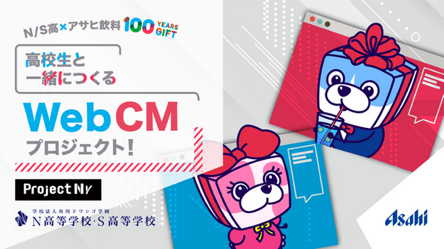本プロジェクトは、N/S高の課題解決型学習プログラム「プロジェクトN」※のコラボレーション授業として実施し、アサヒ飲料の企業ビジョン実現に向けた取り組み「100 YEARS GIFT」のWeb CMを生徒が企画・制作するものです。