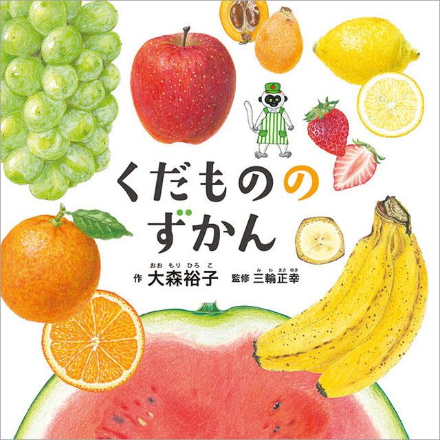 「くだもののずかん」は「おさるフルーツ」の店員さんが、身近なものから珍しいものまで、たくさんの果物を色別にご案内。みずみずしさや甘酸っぱい香りまで描き出す、繊細&濃密なタッチが圧巻。果物がどんなふうに実るのかも、わかりやすく教えてくれます。
