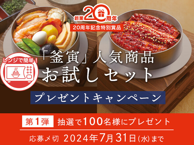 同商品の開発を記念した『レンジで簡単!『釜寅」人気商品お試しセット』のプレゼントキャンペーンを、以下の期間で実施いたします。応募いただいた方の中から、抽選で合計350名様に同商品をプレゼントいたします。