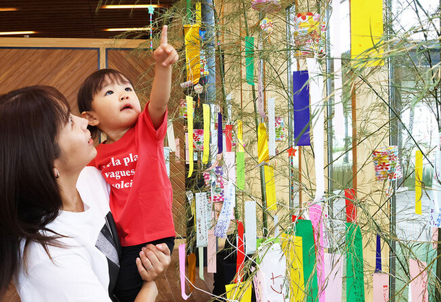 内容:高さ約3.5メートルの笹竹の七夕飾り7本を展示。先着1000名に短冊を無料配付していて、願いを書いた後自由に飾ることができます。