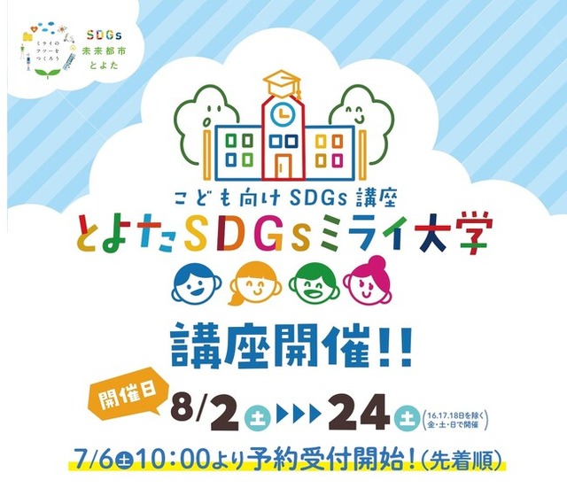 豊田市は、これからの未来を担う子どもたちが、SDGsについて学べるプログラム「とよたSDGsミライ大学」を以下のとおり開催します。