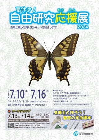 ・7月13・14日には、当館の昆虫担当学芸員が講師となり、貸出用具を使い、昆虫標本を作成するワークショップを行います。