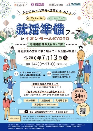 主催:京都府、京都ジョブパーク、京都府中小企業人材確保推進機構(京都府商工会議所連合会、京都府商工会連合会、京都府中小企業団体中央会、(一社)京都経営者協会、(一社)京都経済同友会、(公社)京都工業会、日本労働組合総連合会京都府連合会、京都労働局、京都府、京都市、京都府市長会、京都府町村会)