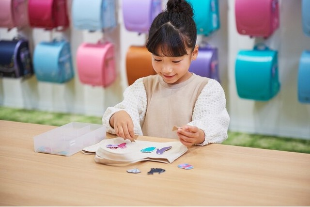 本イベントでは、小さなお子さまから大人の方までどなたでも気軽に楽しんでいただけるよう、ランドセル生地でできた“パーツシール”をオリジナルトレーに貼ってつくる簡単工作を体験いただけます。