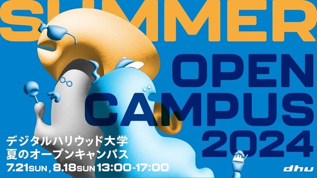春・初夏・夏・秋と、季節ごとにオープンキャンパスを開催しているデジタルハリウッド大学(以下、DHU)。夏のオープンキャンパスでは毎年、業界の第一線で活躍しているプロによる特別講義、最新のデジタルクリエイティブを体感できる体験授業、在学生による作品紹介やサークル・有志による企画・展示など、DHUへの受験を検討しているすべての人が楽しめる内容となっています。2024年度も豪華な外部ゲストによる特別講義と、DHUのオープンキャンパスを盛り上げる在学生チーム「キャンパスPRプロジェクト」による会場演出を行います。ぜひご注目ください。