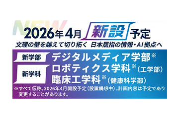 京都橘大学(京都市山科区、学長:日比野英子)では、2026年4月に、デジタルメディア学部(仮称)、工学部 ロボティクス学科(仮称)、健康科学部 臨床工学科(仮称)を設置予定です。