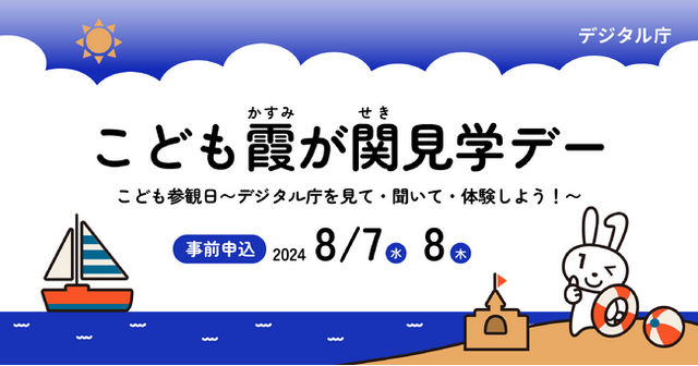 デジタル庁(所在地 : 東京都千代田区紀尾井町1-3)は、各府省庁等と連携して実施する、令和6年度「こども霞が関見学デー(参考:文部科学省ホームページ : https://www.mext.go.jp/a_menu/ikusei/kengaku/)」を、8月7日(水)、8日(木)に開催いたします。