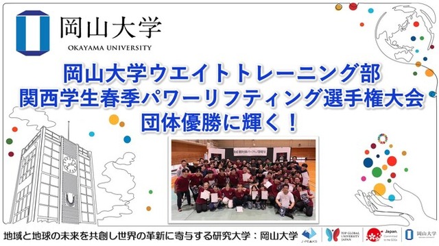 ・【岡山大学】岡山大学ウエイトトレーニング部が関西大会で団体優勝! 部員16人がインカレ出場へ