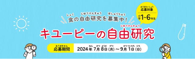 キユーピー株式会社(本社:東京都渋谷区、代表取締役 社長執行役員:高宮 満、以下キユーピー)は、キユーピー公式サイト内の食育コンテンツ『食生活アカデミー』で7月8日(月)から、食に関する自由研究の募集を開始します。