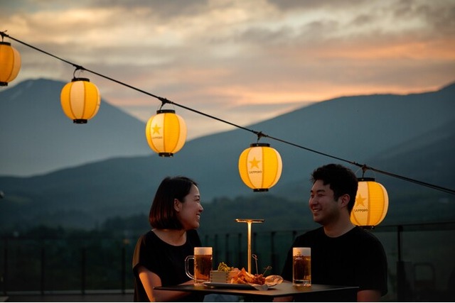 富士山とサーキットを望む「ルーフトップビアガーデン」
