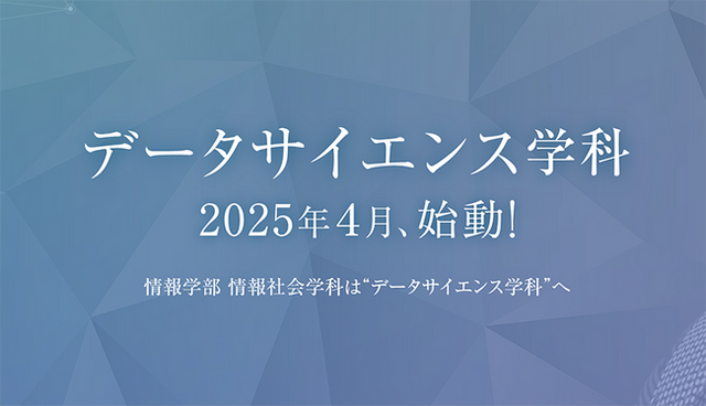 情報社会学科が開設している教育プログラムは、インターネットなどを通じて大量に収集、蓄積された様々なデータを分析し、ビジネスや社会における課題を発見し解決するための知識を習得するための学習プログラムであることから、教育内容をより明確に反映させるため、かつ名称が社会に普及しているという点を踏まえて、学科名称をデータサイエンス学科に変更いたします。