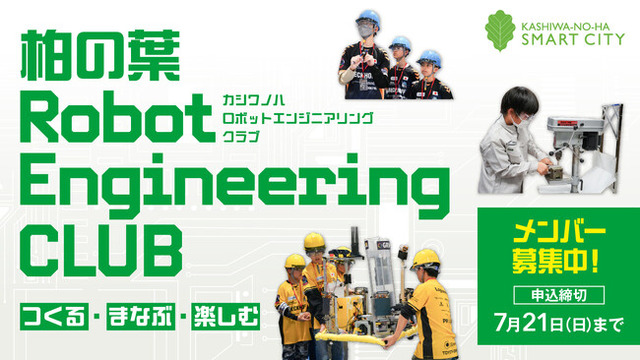 「柏の葉 Robot Engineering CLUB」で募集するのは、ジュニアチーム(小学5年生~中学生)、大人チーム(高校生以上)です。エンジニアリングに興味がありながらも、これまで取り組む機会がなかった子どもから大人までが対象です。
