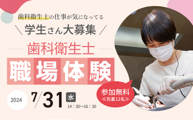歯科衛生士を目指している学生さん、衛生士の仕事に興味のある方はもちろん、進路や職業の選択で迷っている学生さんにも、ぜひご参加いただきたいです。