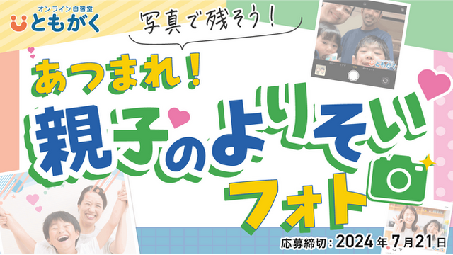 株式会社新学社(本社:京都市/代表取締役社長:山本 伸夫)は、2024年4月から「オンライン自習室『ともがく』」を提供開始しました。ともがくでは「日々の家庭学習の習慣化」を目指し、いつもの仲間とオンラインで繋がりながら学習します。なお、自習室での学習終了時には、「がんばりフォト」として日々のがんばりを写真に残します。今回、昨年7月14日に同社が制定した「家庭教育を考える日」にちなみ、「がんばりフォト」を親子・家族で一緒に撮影していただき、その写真を、「あつまれ!親子のよりそいフォトキャンペーン」で大募集します!