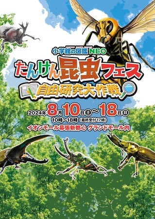 楽しみながら学べるエデュテイメントソリューションの開発を手掛ける日販テクシード株式会社(代表取締役社長:藤澤 徹)は、学習図鑑売り上げNo.1『小学館の図鑑NEO』の特別協力・監修のもと、昨年約1万人を集客した「小学館の図鑑NEO たんけん昆虫フェス」をさらにパワーアップさせた「小学館の図鑑NEO たんけん昆虫フェス 自由研究大作戦」を2024年8月10日(土)~18日(日)まで、イオンモール幕張新都心グランドモール(千葉県千葉市)で開催いたします。