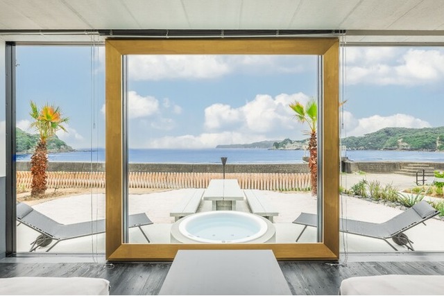 “関東の沖縄”とも称される透明度の高い海と“日本の渚・百選”に選ばれた美しい砂浜が広がる鵜原海岸、豊かな緑とリアス式海岸が続く南房総国定公園に囲まれた勝浦エリアです。この閑静なロケーションを活かし、海までわずか5秒の距離に位置する1日1組限定のスモールラグジュアリーホテル「THE VIBES VILLA (ザ・バイブス・ヴィラ)」がオープン。“Ocean Hideaway(海の隠れ家)”をコンセプトに、アーバン・サード・リゾートとして都市の喧騒を離れ心を休めることができる、あなただけのリゾート空間を提供します。