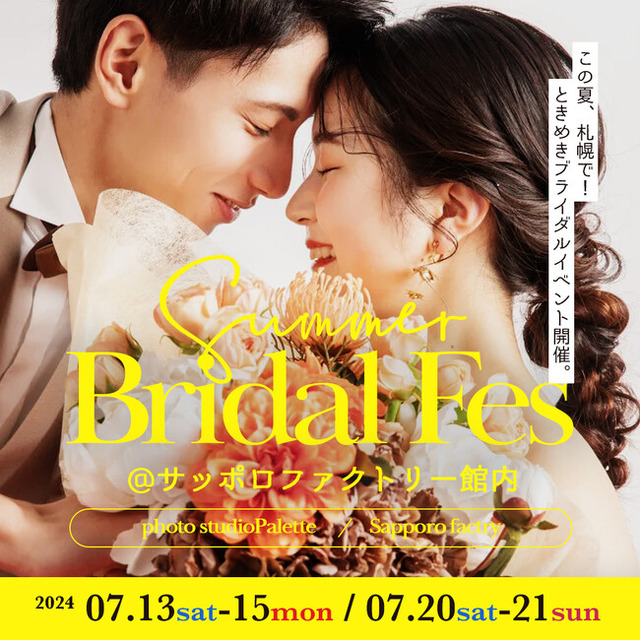 サッポロファクトリー館内にある写真工房ぱれっとサッポロファクトリー店(本社/三景スタジオ)にて"札幌サマーブライダルフェス"開催が決定。週末デートにもおすすめ。大切な方をお誘い合わせの上、お気軽に来店いただけるサマーイベントです。