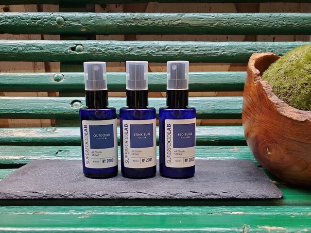 ■商品名:SUPERFOOD LAB アウトドアアロマスプレー 40ml (ローション) ■商品名:SUPERFOOD LAB アロマスプレー for STINK BUG(カメムシ)40ml ■商品名:SUPERFOOD LAB アロマスプレー for BED BUGS(トコジラミ)40ml
