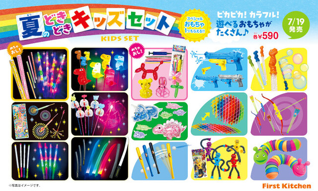 夏のスペシャルキッズセットをより多くのお子さまに楽しんでいただくために、7月19日(金)~7月28日(日)の期間中、ファーストキッチンの公式X(旧Twitter)アカウント(@FK_PR)をフォローし、対象ツイートをリツイートいただくと抽選で10名様に、スペシャルおもちゃセット(全15種)をプレゼントいたします。ぜひご参加ください!