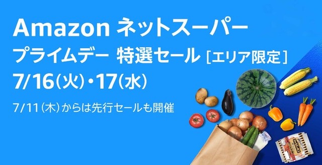 Amazonネットスーパーの各ストアでは、7月16日(火)0時から7月17日(水)23時59分まで開催する「プライムデー」にあわせ、プライム会員のお客様を対象にした「プライムデー特選セール」を開催します。各ストアにおいて、対象商品のセールやクーポンキャンペーンを実施するほか、一部のキャンペーンは、7月11日(木)からスタートした「プライムデー先行セール」期間中にも、お買い物をお楽しみいただけます。