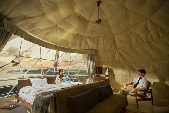 専用サウナなどの特別設備が揃うドームテント型スイート「ルーフトップスイート」から
