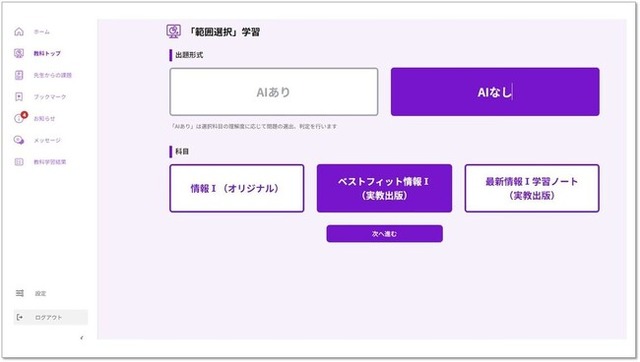 既存の科目に対しても、1,300問を超える大規模な問題追加を行います。特に、「情報I」は株式会社実教出版との提携により、同社が提供する340問を追加。検定教科書の発行や教科書傍用の教材作成などで評価の高い同社のコンテンツを追加することにより、知識の定着から大学入学共通テストレベルまで対応が可能となりました。