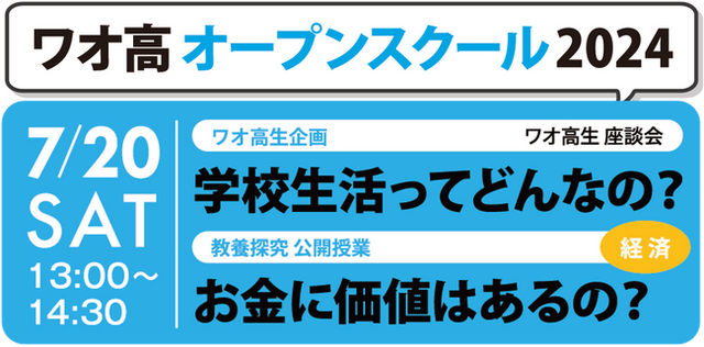 ワオ高オープンスクール2024 第三回 7月20日(土) 13:00-14:30 (申込期限 7/19(金)15:00)