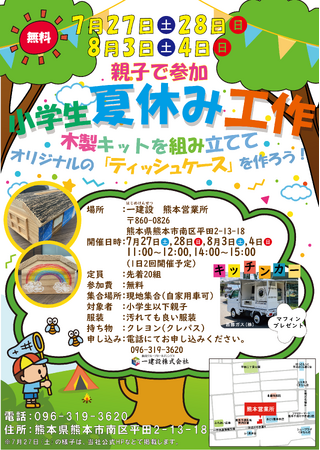 また、開催期間中に、小学生以下の児童とその保護者を対象とした夏休みの自由研究にピッタリな工作イベントを20組限定で開催いたします。