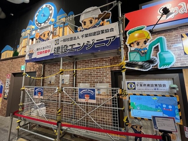 イオンモール キッズドリーム合同会社は、一般社団法人 千葉県建設業協会と連携し、未来を担うお子さまたちに地域を守る建設業の技術や創造力に触れていただくことを目的に、2021年12月に「建設エンジニア」の仕事体験をスタート。地震や災害時における復旧・復興事業の重要な役割を果たす仕事内容で、工事現場のチームワーク、コミュニケーションの大切さを体験の中で学ぶアクティビティとして1か月間の期間限定でオープンしました。その後、2022年12月からは常設の仕事体験アクティビティとして、道路にあるガレキの撤去をして町の道路を復旧させるストーリーを展開。オープン以来、1万人以上のお子さまが体験し、ご好評いただいております。この度、足場にのぼって壊れた窓ガラスを交換するストーリーにリニューアルして再オープンします。