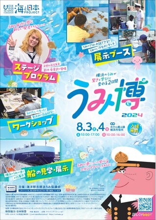 海洋都市横浜うみ協議会(注1)が主催し、子どもとお出かけ情報サイト「いこーよ(https://iko-yo.net/)」を運営するアクトインディ株式会社が企画開発する「海洋都市横浜 うみ博2024」が、2024年8月3日(土)、4日(日)に開催されます。