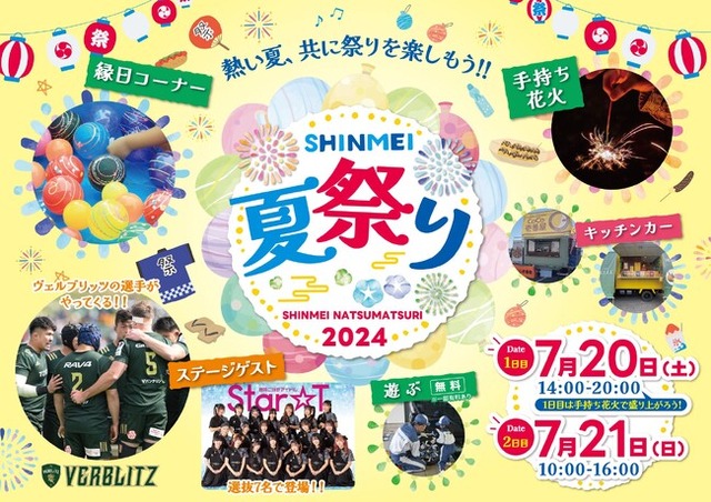縁日コーナー、手持ち花火配布、キッチンカー、ワークショップ、ヴェルブリッツの選手とのふれあいコーナー、アイドルグループステージ等