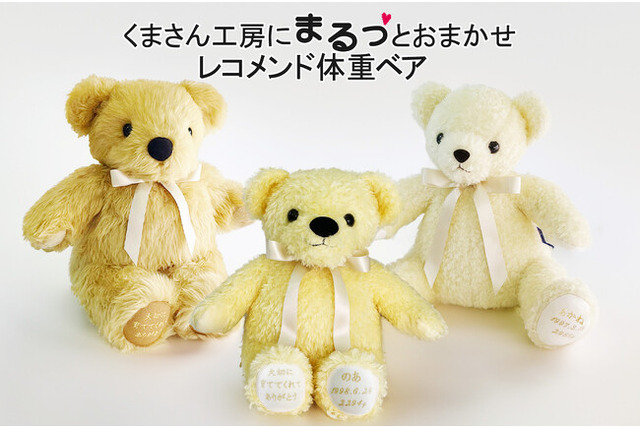 くまさん工房から赤ちゃん体重ベア『レコメンドベア』が新登場!生まれた時の重みを再現するテディベアを簡単オーダー。Rakuten最強配送で感謝・感激・感動の抱っこを即日お届け。7月1日注文受付開始