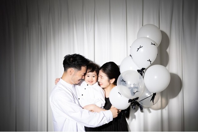 Palette+plus札幌西岡店は、昨年9月オープンした新店舗。今まではお子様の撮影専門のスタジオでしたが、広めのスタジオのサイズ感を活かし、ウエディング撮影がスタート!今回はまっしろスタジオで二つのライティングで、コンフェッティや風船などを使用し、パーティ感を出したビジュアルに。