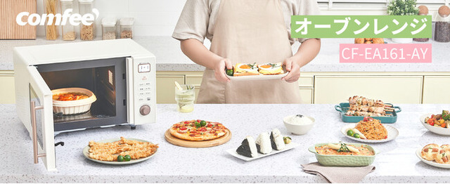 -【商品仕様】COMFEE' オーブンレンジ:◇コンパクトなサイズ:幅46×奥行35×高さ29cm ◇容量:16L大容量 ◇電源:AC100V ◇最大出力:レンジ‐500W/650W、オーブン100℃~250℃ ◇付属品:角皿・日本語取扱説明書