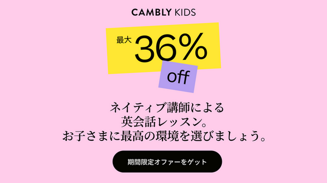 Cambly Inc.(本社:アメリカ・サンフランシスコ、日本代表:佐藤 亜希子)は本日7月16日(火)から期間限定で、ネイティブ講師との子ども向けオンライン英会話サービス「CAMBLY KIDS」のレッスンをお得に受講いただける特別オファーを提供いたします。最大36%off、1レッスン945円~ご利用いただけます。