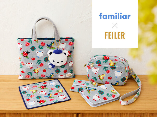 フェイラーでは、ハンカチ(ライトグレー×ネイビー)、ゲスト、プティバス、レッスンバッグ、ショルダーバッグ、ミニポーチ、ペンケース、ティッシュポーチ、手付き巾着、マルチケース、チャームポーチ(ファミちゃん)をラインアップ。