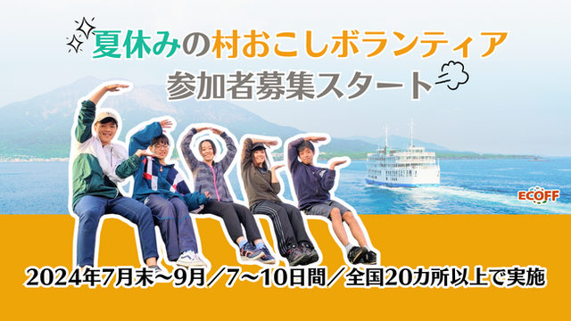 「地域活性化を、みんなのものに。」をテーマに、全国各地の離島や農山漁村で学生向けの住み込み型ボランティア活動を展開している村おこしNPO法人ECOFF(本部:東京都文京区 代表:宮坂大智)は、2024年7月末から9月に実施される「村おこしボランティア」の参加者募集を開始します。