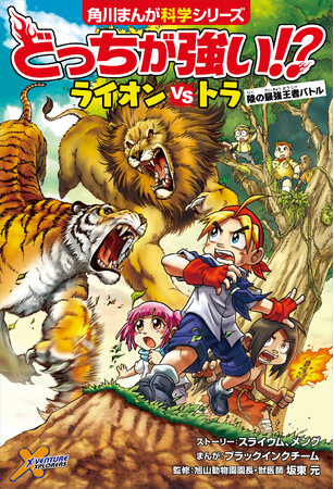 角川まんが科学シリーズの「どっちが強い!?」は、ライオンとトラ、サメとメカジキなど、戦闘力の近い自然界の強い生き物たちを、科学的データをもとに、対決させ、勝敗を決めることで生き物について学んでいく科学まんがです。2013年にマレーシアで刊行後、2016年に日本でも刊行開始。小学生を中心に人気沸騰中の大人気シリーズです。