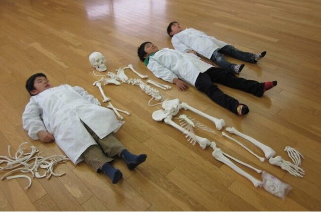ガイコツの研究「等身大のガイコツ」をみんなで組み立てながら、支える・守る・曲げるといった体の仕組みを学びます。