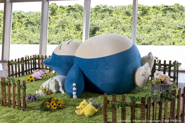 ・睡眠ゲームアプリ『ポケモンスリープ』の世界を表現。ほぼ等身大カビゴンや『ポケモンスリープ』ならではのイラスト展示などの装飾で、まるでゲームの中でポケモンたちとグランピングするかのような没入体験が叶う