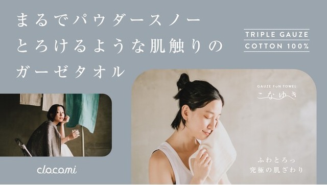 [プロジェクト名] まるでパウダースノーのように「ふわさらっ」と気持ちいい3重ガーゼタオル