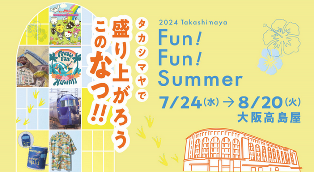 高島屋大阪店では、おこさまを中心に、家族三世代で楽しんでいただける夏休みイベントを開催します。かつての百貨店は、屋上の遊園地や最上階のレストランなどが行楽先のひとつでしたが、近年はショッピングモール、テーマパークなど商業・娯楽施設が多様化しています。そこで、今のおこさまへの家族での夏の思い出づくりとなるように、おこさまも大人も興味がわく「鉄道」「サンリオ」「恐竜」の3つの大型イベントをはじめ、百貨店ならではの体験ができるワークショップなど、期間中に30種類以上のイベントを実施します。