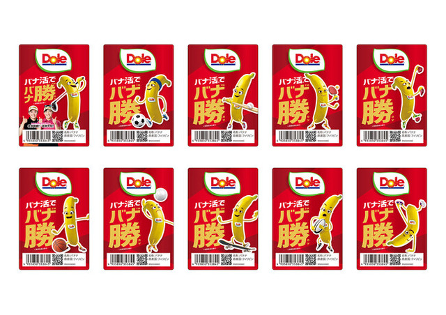この度、頑張る人を応援したいという想いを込めた『Doleバナ勝(TM)バナナ』が新登場。この夏、大きな話題となることが予想される、サッカー、ブレイキン、バレーボールなど、10種目の人気スポーツに挑戦するDole公式キャラクター「スウィーティオ」をデザインしました。『Doleバナ勝(TM)バナナ』は7月22日頃より順次、店頭に並びます。推しスポーツのラベルを、ぜひ店頭で探してみてください。