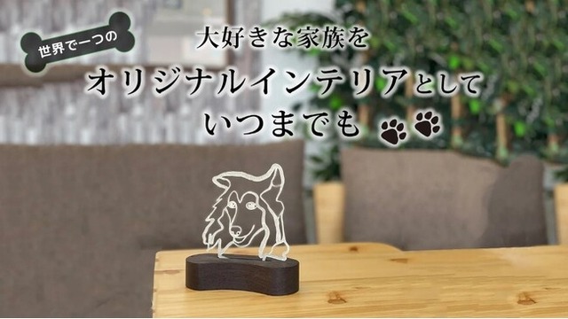 ペットの写真をイラスト化しアクリルで製作します。台の中には収納スペースもあるので、思い出の品を保管できます。